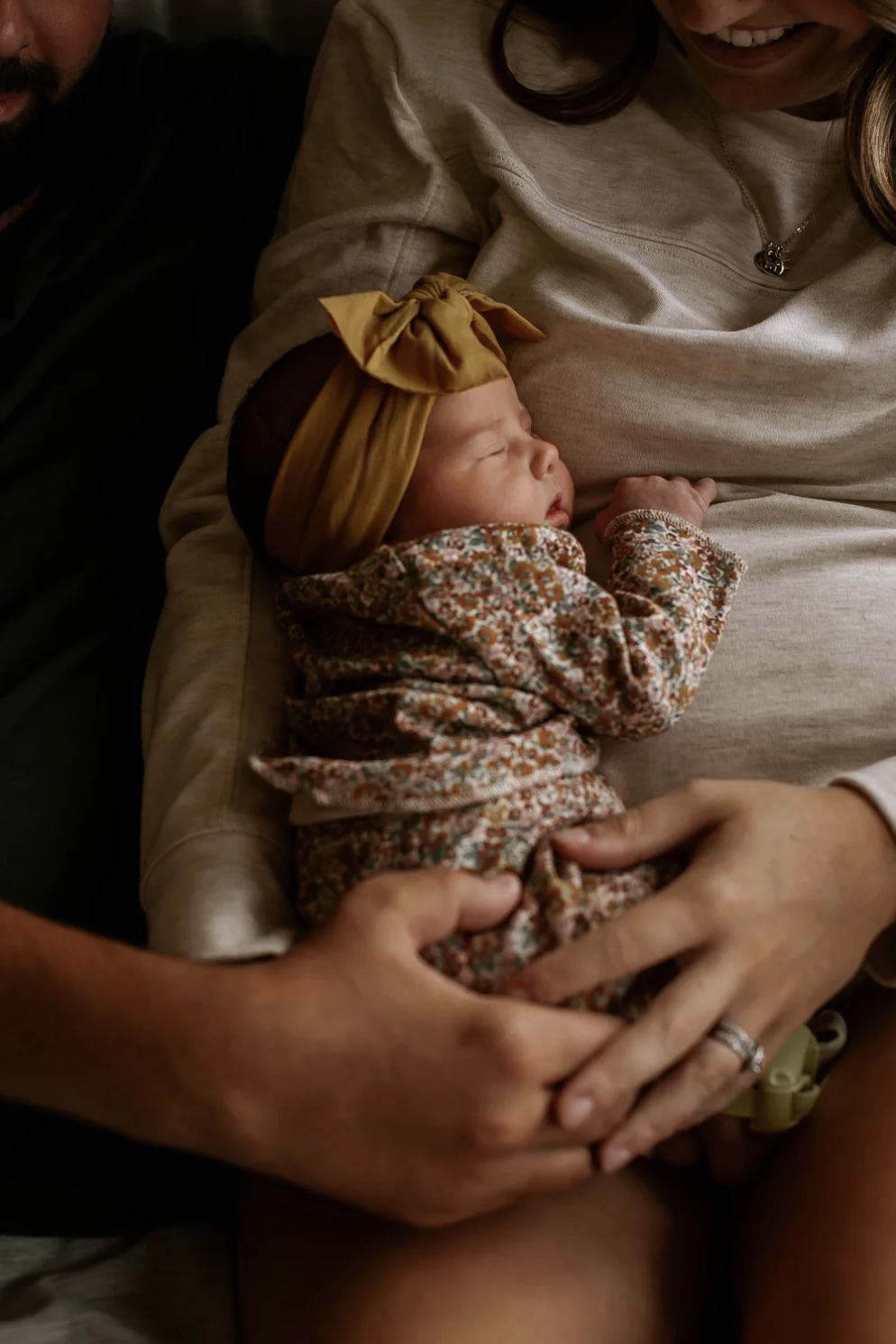 A full journey into motherhood, captured across three sessions — maternity, newborn, and family.